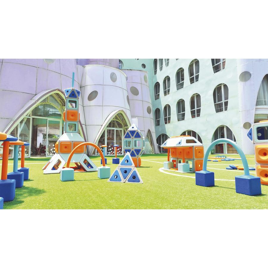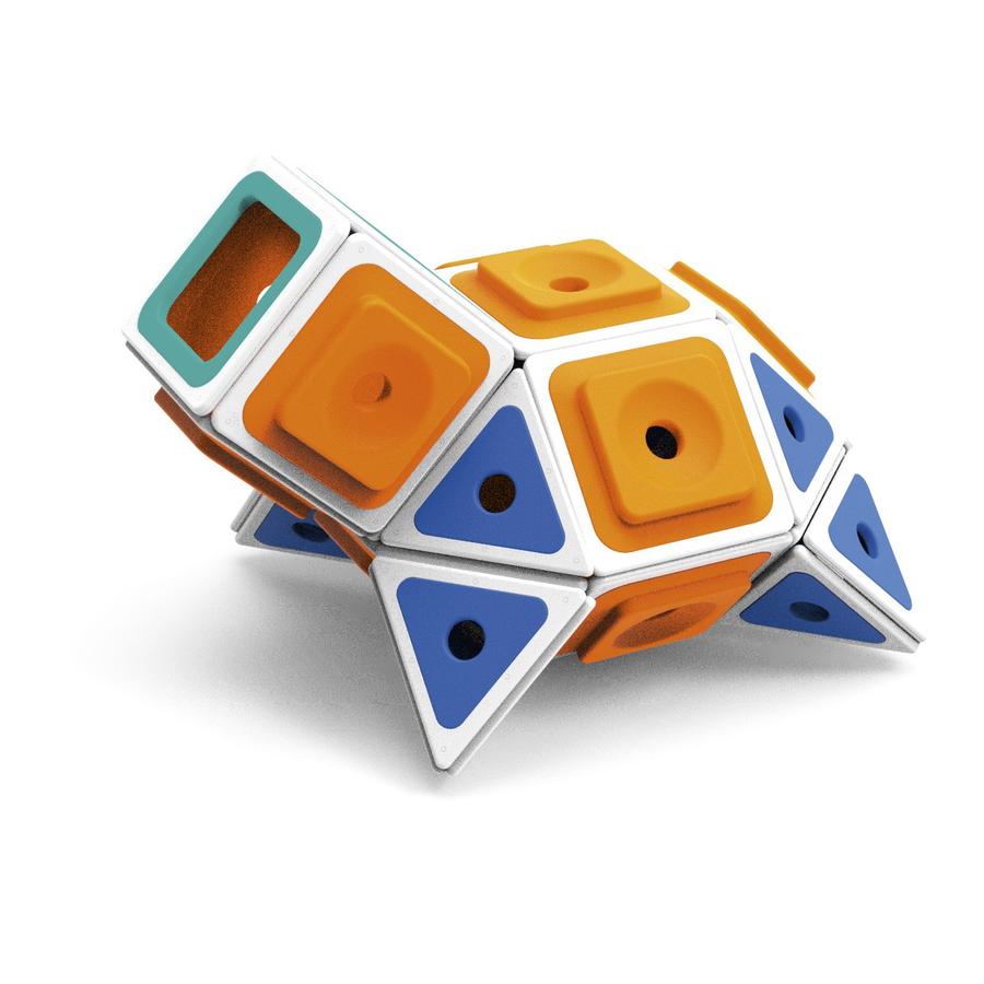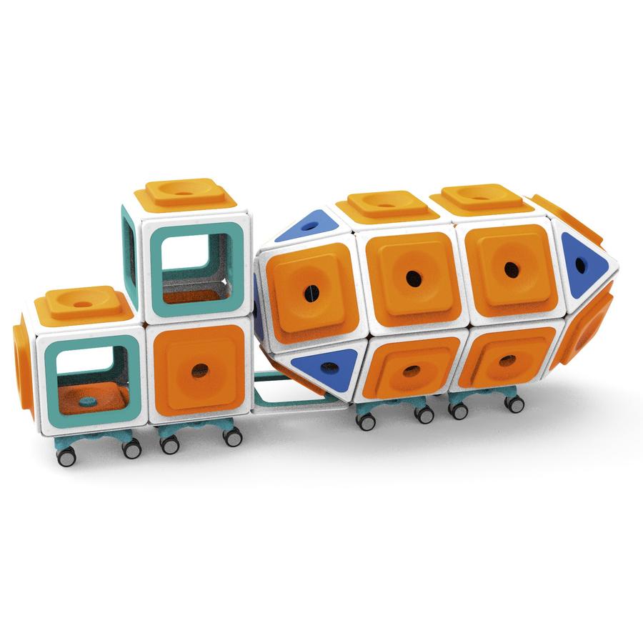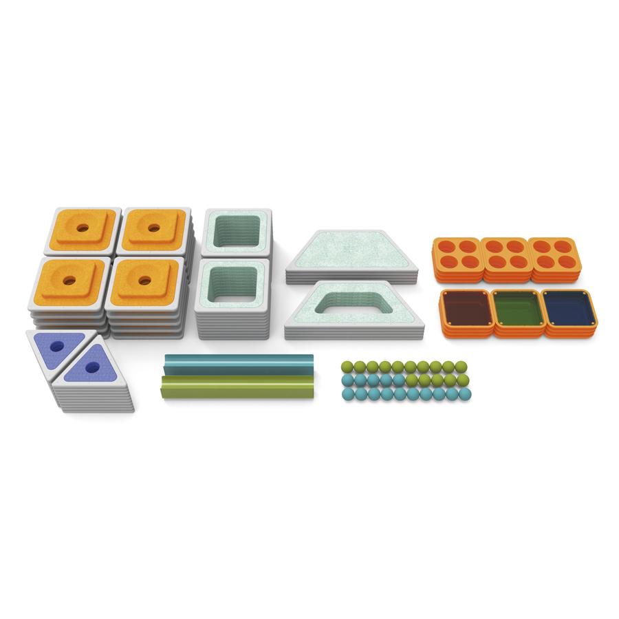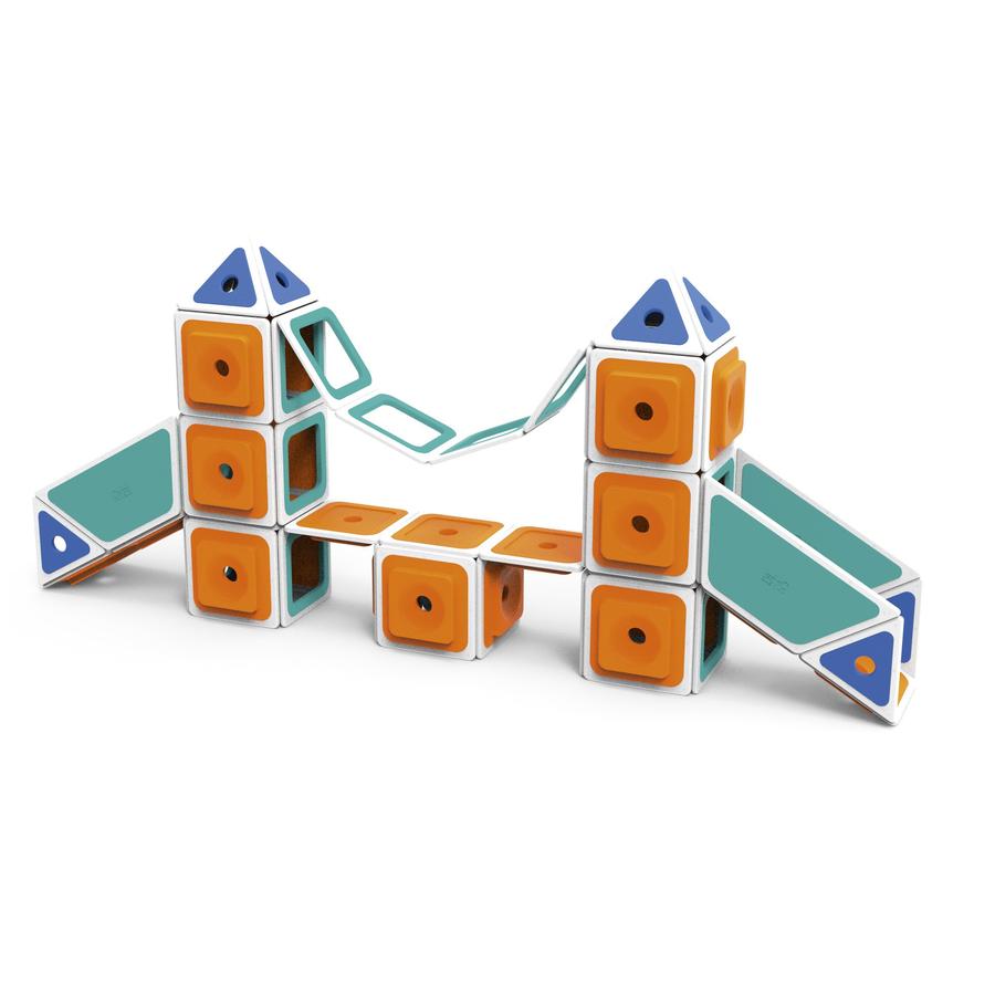 Aus einzelnen Modulen zaubern Kinder ganze Welten. Mit dem vielseitigen Konstruktionssystem lässt es sich superkreativ bauen, kombinieren und forschen. Die offenen und flexiblen Elemente erlauben immer neue Spiel- und Lernräume. Magnetische Rahmenelemente verbinden sich ratzfatz zu fantasievollen Bauwerken wie Türme, Tunnel und Häuser mit bunten Fenstern.