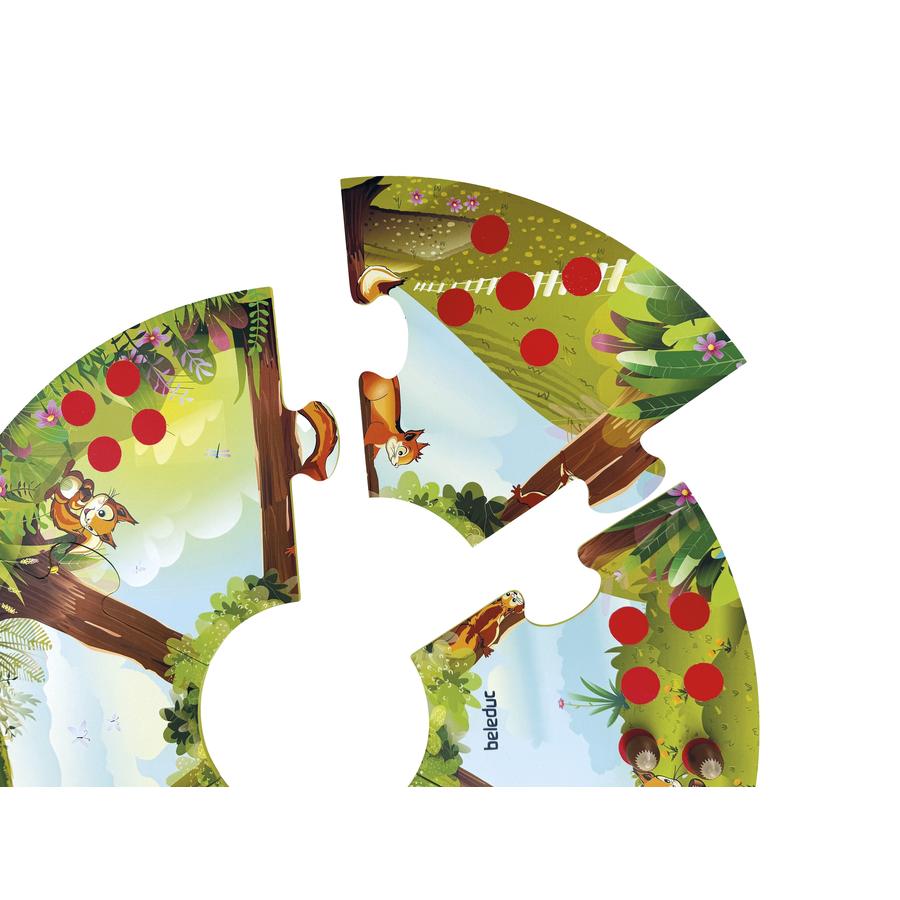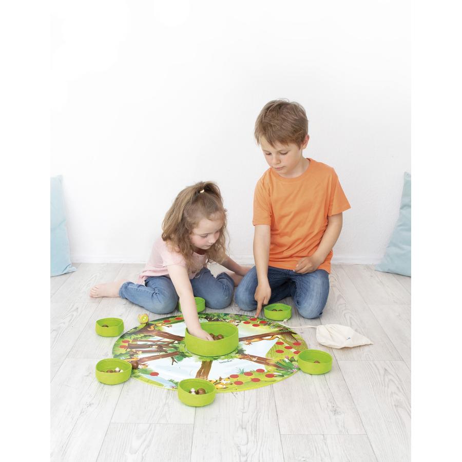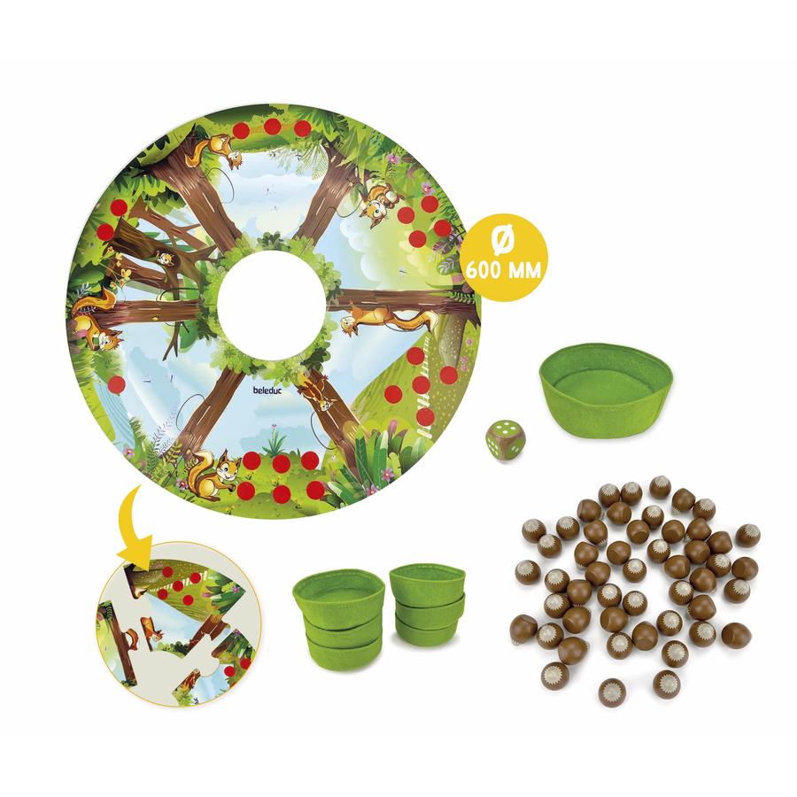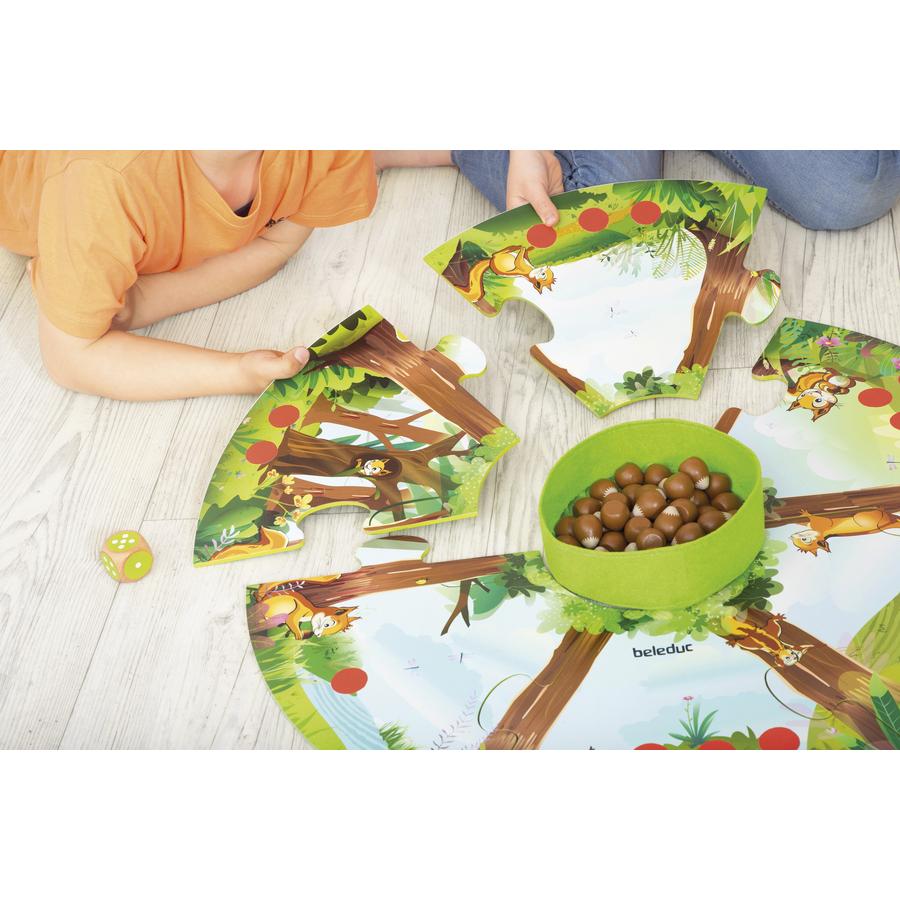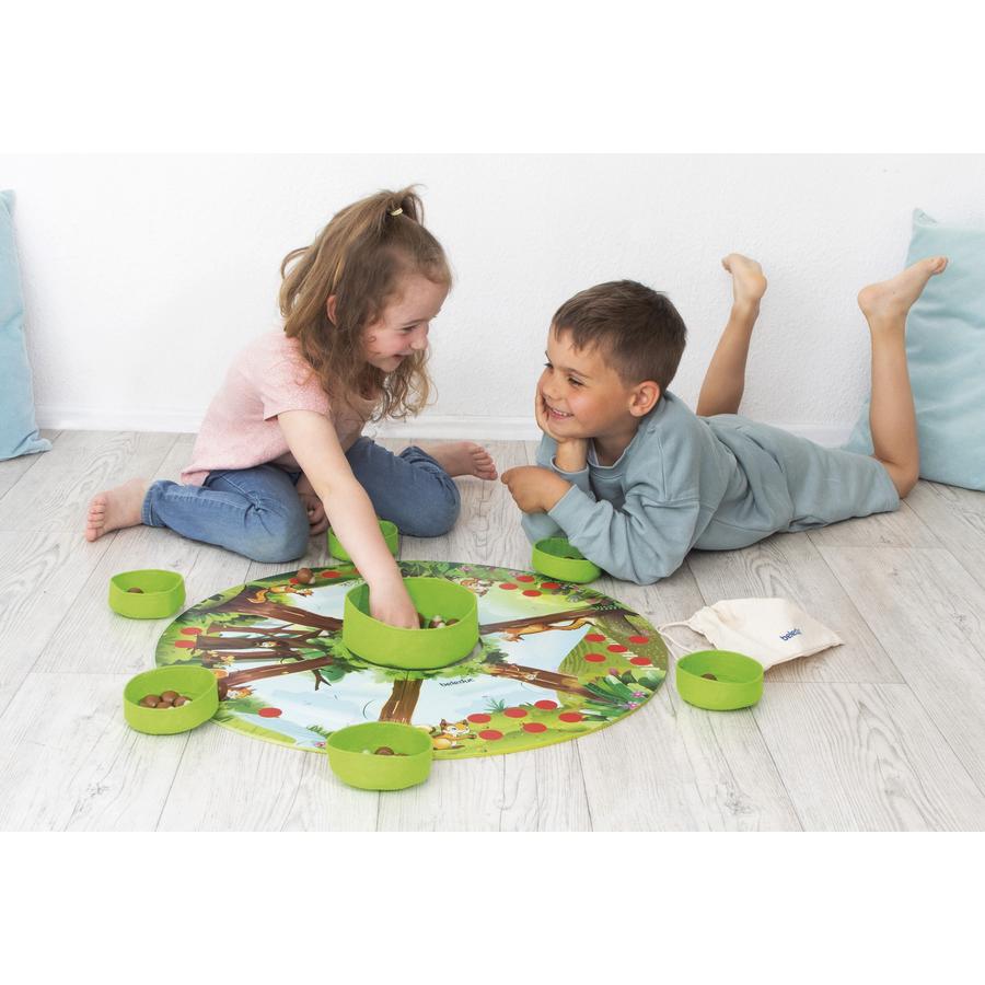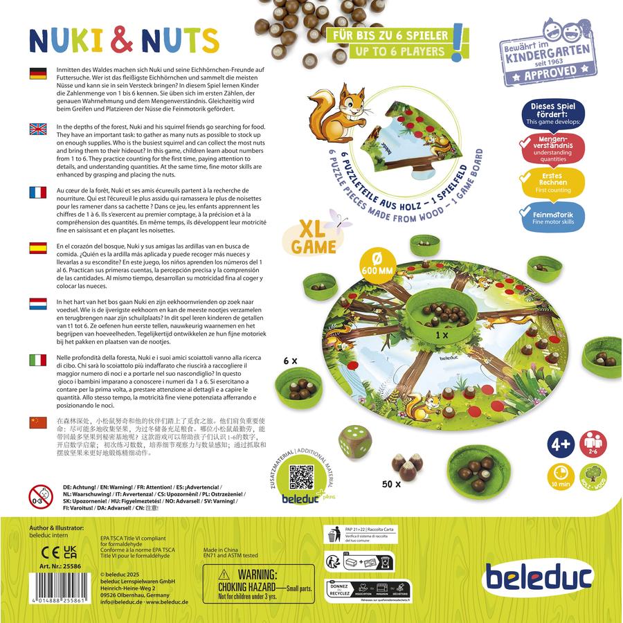 Eichhörnchen Nuki geht mit seinen Freunden auf Futtersuche! Jetzt heißt es so schnell wie möglich viele Nüsse sammeln und ins sichere Versteck bringen. Bei diesem Spiel lernen Kinder ab 4 Jahren die Zahlen von 1 bis 6 kennen und die passenden Mengen zuzuordnen. Spielerisch wird beim Greifen und Platzieren der Nüsse die Feinmotorik gefördert. Für bis zu 6 Spieler.